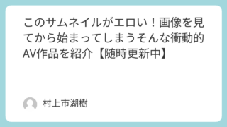身近系AVまとめ このサムネイルがエロい!画像を見てから始まってしまうそんな衝動的AV作品を紹介【随時更新中】 サムネイルを見ただけで僕は始まってしまった。そんな瞬間を共有してほしいAV作品を厳選紹介します。 2025.12.26 身近系AVまとめ